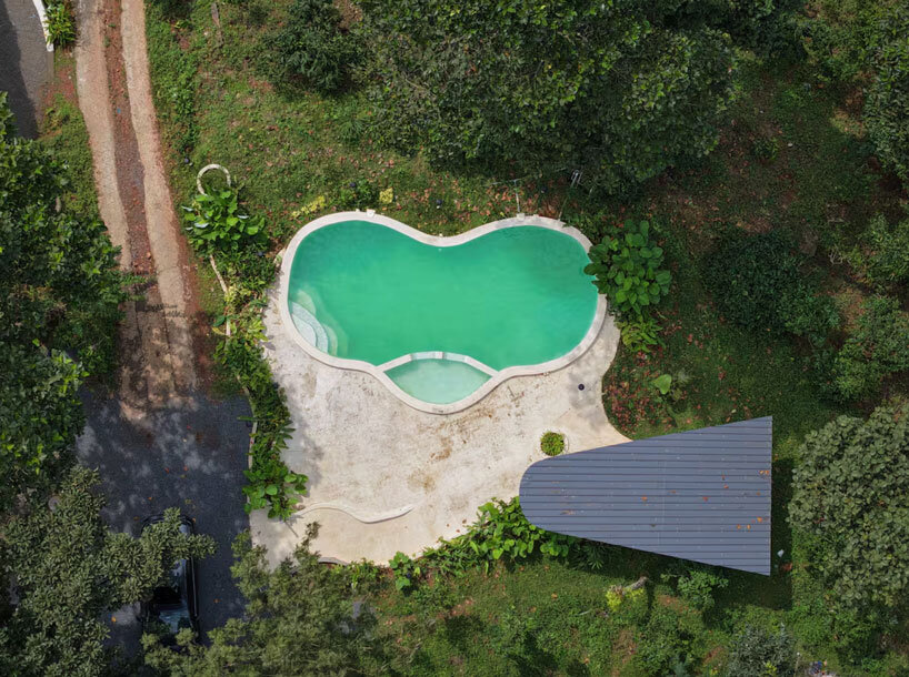 the cabin sits within a larger eco-retreat masterplan, connected by organic pathways | all images courtesy of Raving Dots Studio