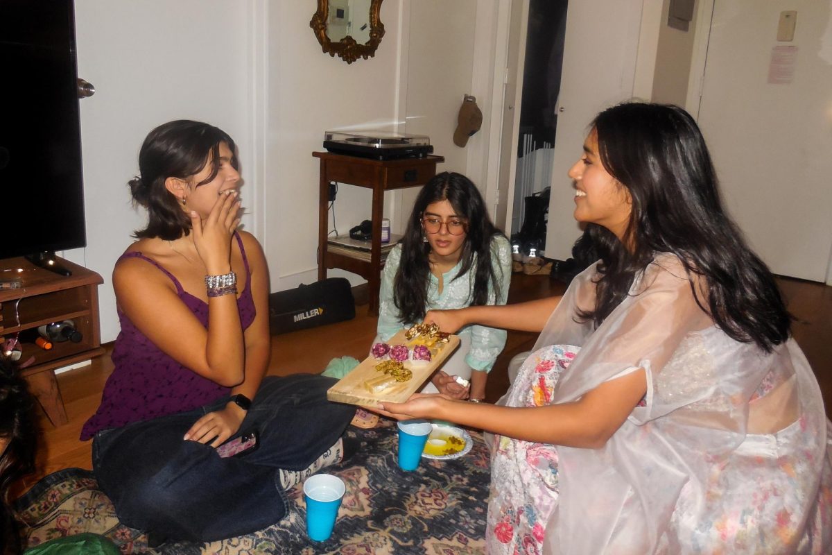 I had invited everyone to wear Desi attire, and I put on a playlist of mellow Hindi songs to set the scene. People started to arrive, and my worries quickly faded as I saw all my guests starting to fill up their plates with food and compliment each other’s kurtis and lehengas. Everyone made their way to the couch and carpet to find places to sit and talk with each other, and the party slowly started to look more like what I wanted Diwali to be about — togetherness, warmth and connection.